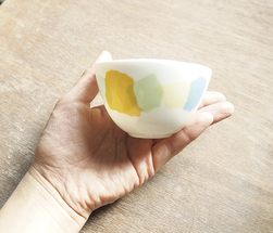 石こう型への鋳込み体験とアクリル絵の具で磁器に絵付け。